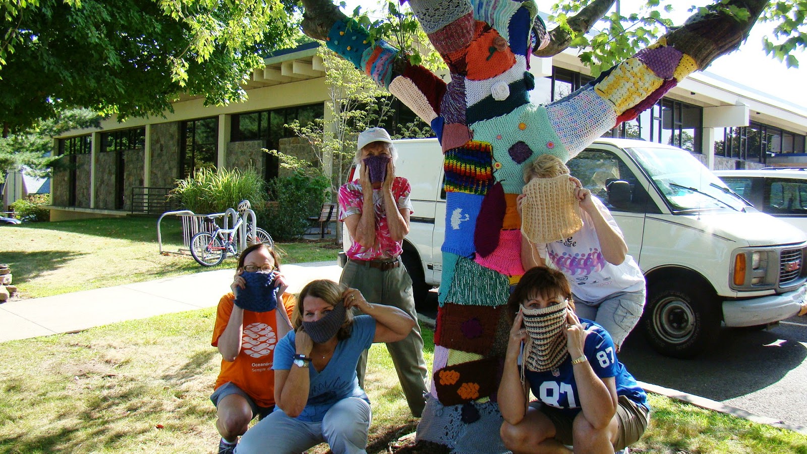 ‘Ninja Knitters’ yarnbomb Fairfield, Conn. library